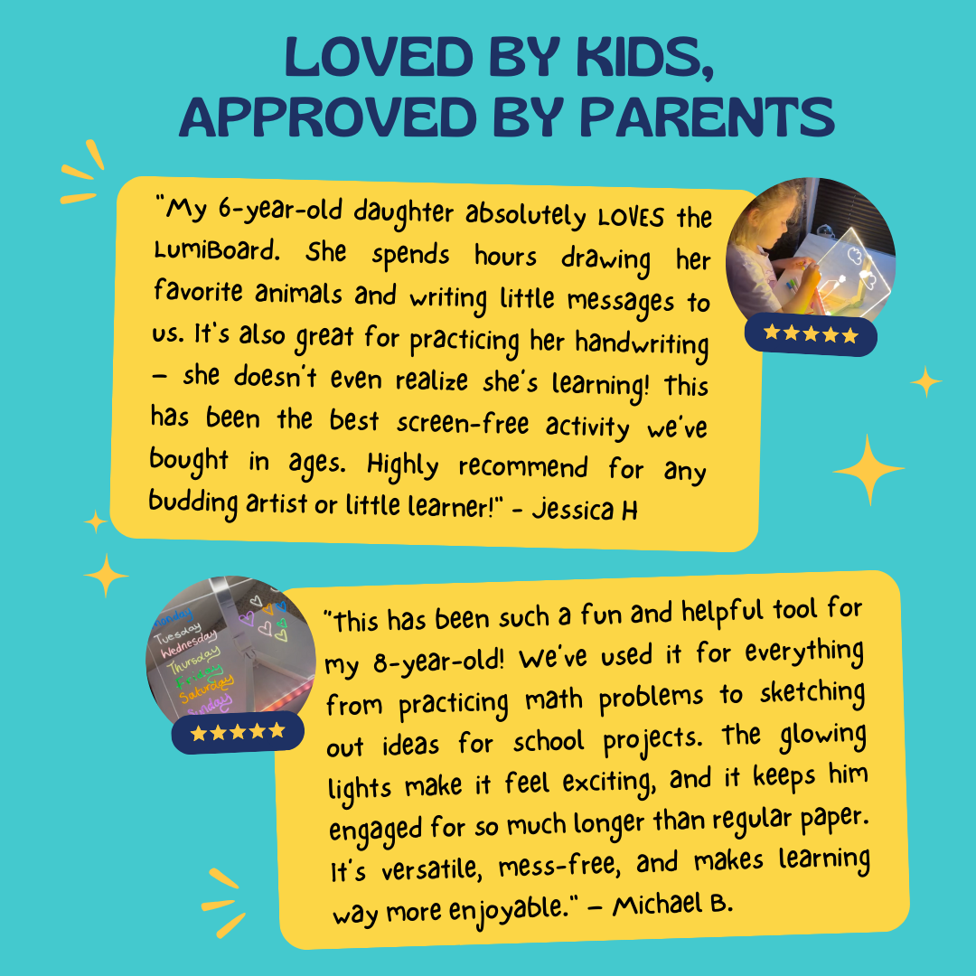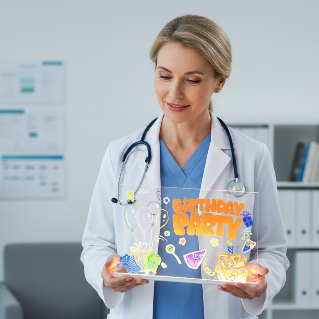 "As a paediatric occupational therapist, I recommend this LED drawing board to help children strengthen fine motor skills, improve hand-eye coordination, and stay focussed—without screens. The glowing surface offers instant visual feedback that keeps children engaged longer, making it especially helpful for children with ADHD, autism, or sensory needs. It's not just play—it's therapeutic learning disguised as fun."
